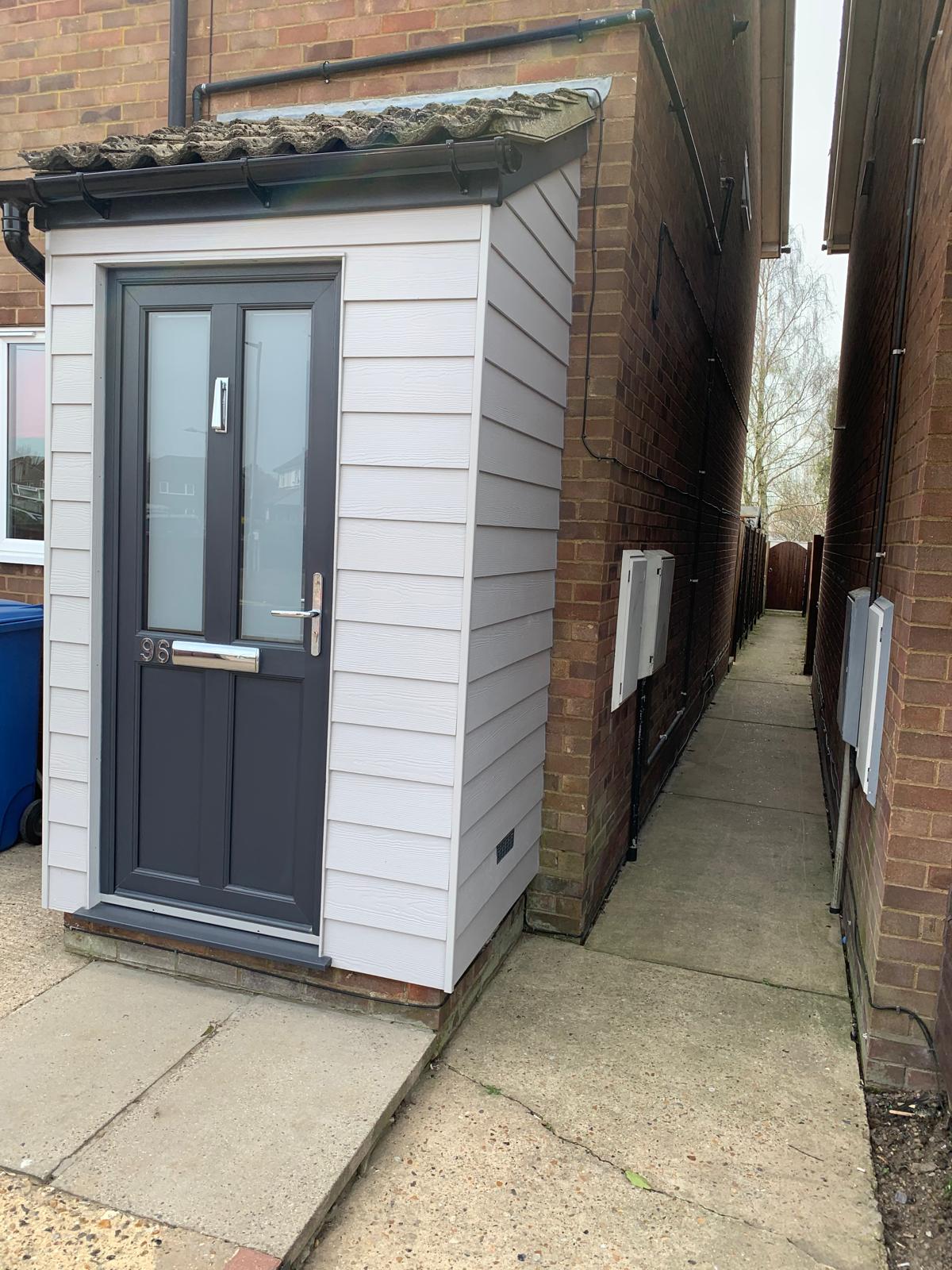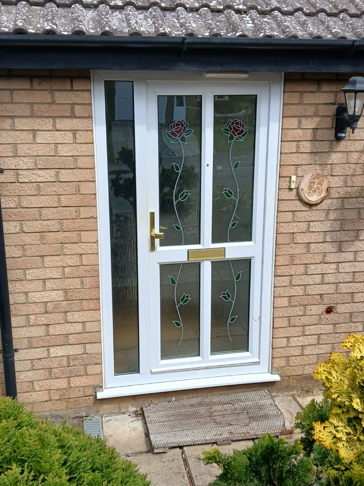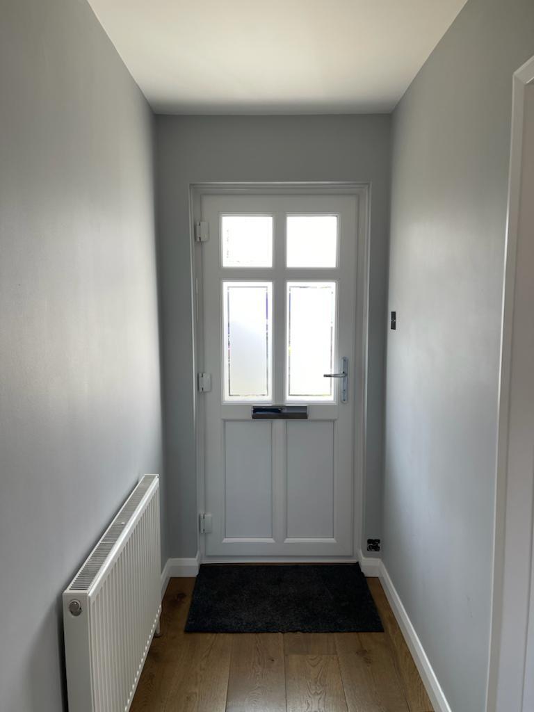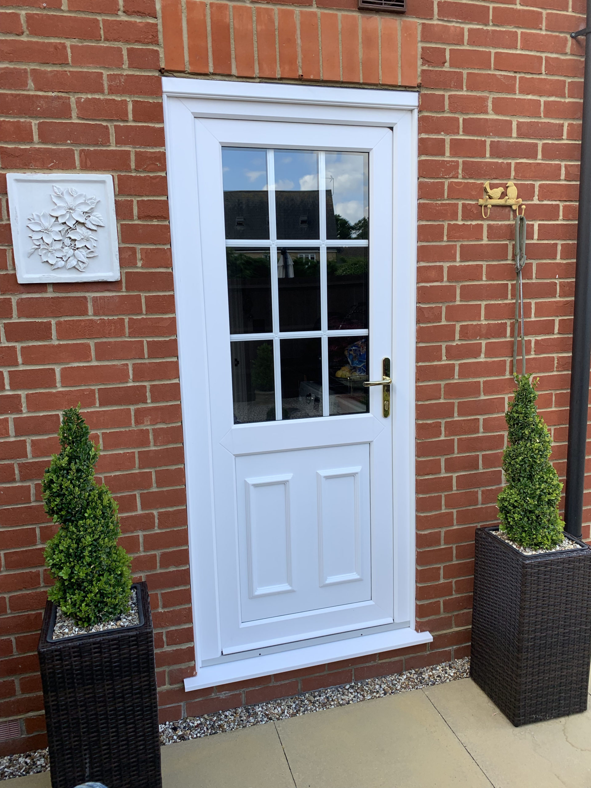 white upvc door with mechanical joints to midray to replicate timber door appearance